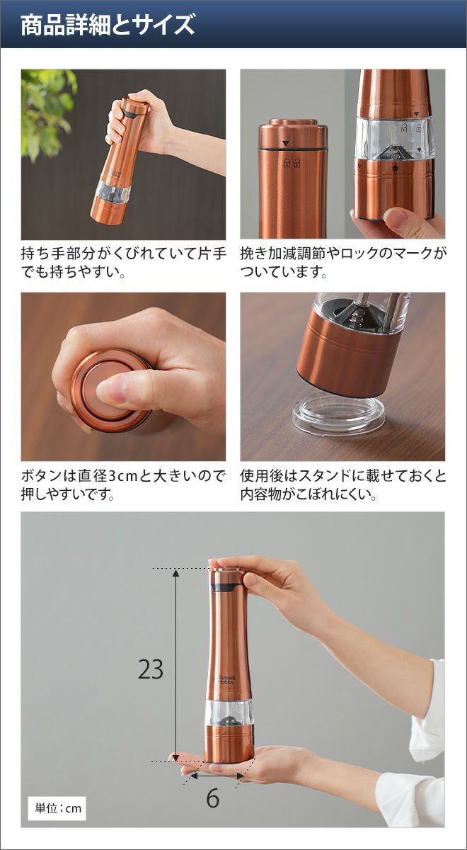 他の画像を見る 電動ミル/ラッセルホブス/電動ミル/ソルト&ペッパー/2本セット/数量限定カラー/ロイヤルブロンズ/ミル/コンパクト/コードレス/おしゃれ/岩塩/スパイス/ブラックペッパー/調味料/調整 ラッセルホブス 電動ミル ソルト&ペッパー 2本セット 数量限定カラー ロイヤルブロンズ 当店特別価格 ¥ 7,700 税込 在庫切れ 詳細を見る お気に入りに登録する