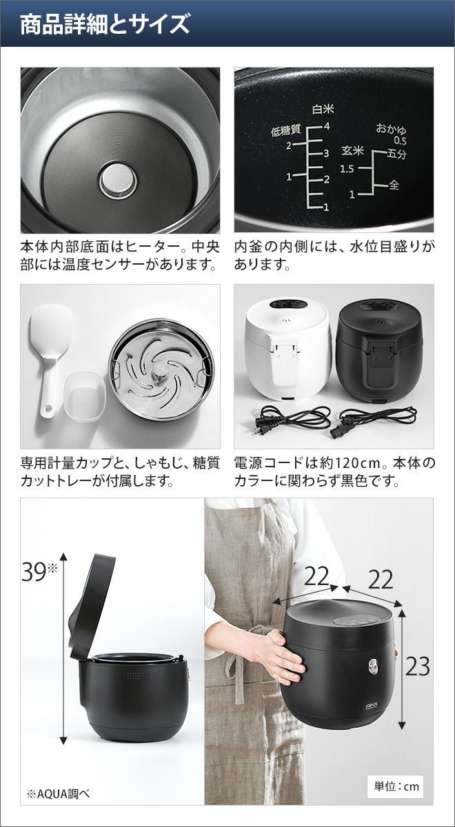 他の画像を見る 炊飯器/ライスクッカー/電気炊飯器/ロカボ/炊飯/糖質カット/ジャー/糖質/健康/糖質制限/炊飯ジャー/保温/4合/玄米/お粥/おしゃれ/炊き込みご飯/ギフト/プレゼント/母の日/父の日 アイネクス 炊飯器 スマートライスクッカー 糖質カット炊飯器 AX-RC3 ライスクッカー 電気炊飯器 ロカボ 炊飯 糖質カット ジャー 糖質 健康 糖質制限 炊飯ジャー 保温 4合 玄米 お粥 おしゃれ 炊き込みご飯 AINX Smart Rice Cooker 当店特別価格 ¥ 15,840 税込 在庫切れ 詳細を見る お気に入りに登録する