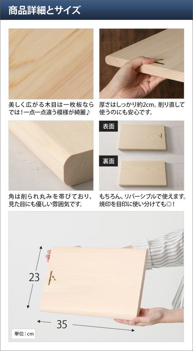他の画像を見る 月齢伐採したこだわりの国産ヒノキ材で作った、末永く愛用できる上質なまな板です。 月齢伐採ヒノキのまな板 角丸 Lサイズ 当店特別価格 ¥ 9,680 税込 在庫切れ 詳細を見る お気に入りに登録する
