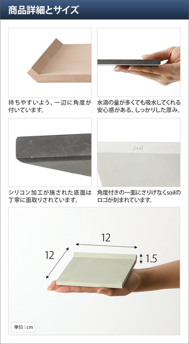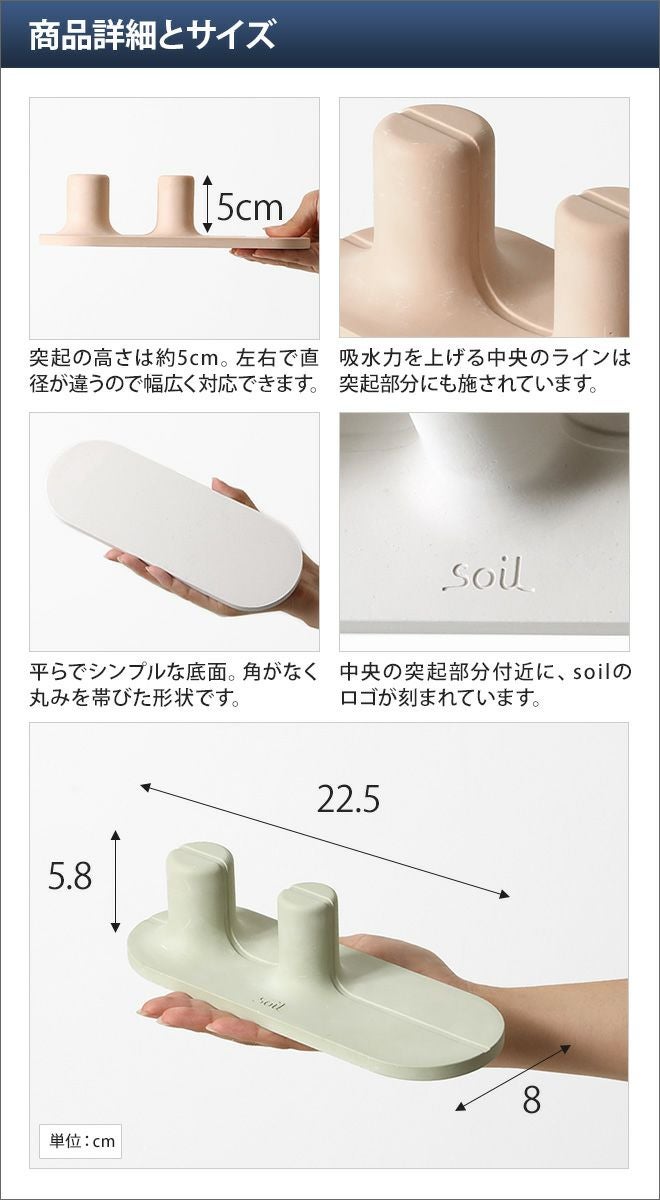 他の画像を見る 吸水性に優れた珪藻土でつくられたsoilのドライングボード。 洗ったボトルやキャップパーツを別々に乾かせます。 soil ソイル ドライングボードforボトル 当店特別価格 ¥ 3,740 税込 在庫切れ 詳細を見る お気に入りに登録する
