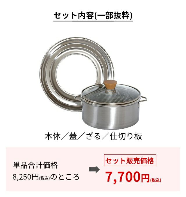 他の画像を見る 鍋のフチにフィットして、お手持ちの鍋やフライパンが蒸し器に早変わり。汚れとサビに強いステンレス製で、丸洗いOK。食洗機にも対応でお手入れ簡単。安心の日本製です。 【専用蒸し板】ビーワースセレクション すっきり暮らすステンレスせいろ 仕切り板単品 蒸し板 受け台 蒸し台 せいろ 蒸し器 日本製 ステンレス 20cm 21cm 22cm 23cm 24cm 25cm 26cm 蒸籠 鍋 フライパン 食洗機対応 洗える bws SELECTION 当店特別価格 ¥ 1,650 税込 詳細を見る お気に入りに登録する