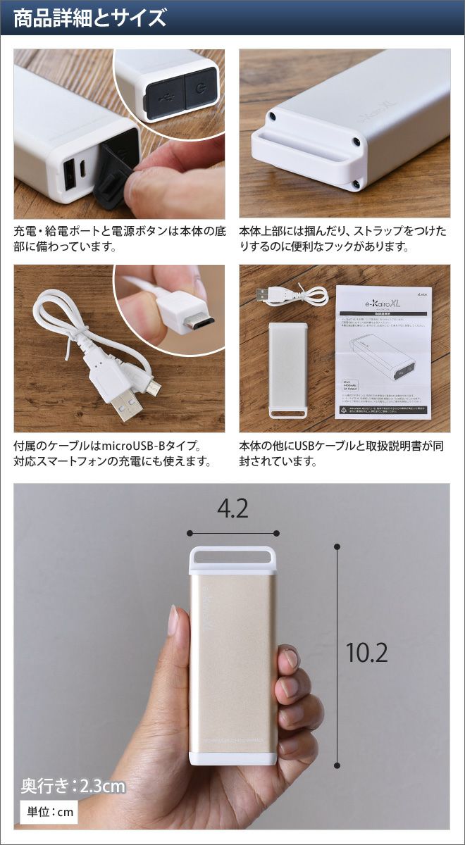 他の画像を見る 使い捨てないエコカイロ、イーカイロにバッテリー容量がアップした「XL」が登場!充電して約500回繰り返し使えいます。 e-Kairo XL 充電式カイロ 当店特別価格 ¥ 4,378 税込 在庫切れ 詳細を見る お気に入りに登録する
