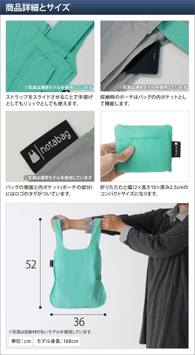 他の画像を見る 日常のアイデアから生まれたシンプル2wayエコバッグ。反射材を使用し、暗い夜道でもドライバーからの視認性を高めます。 Notabag(ノット・ア・バッグ) リフレクティブ 2WAYエコバッグ ◆メール便配送◆ 当店特別価格 ¥ 5,280 税込 在庫切れ 詳細を見る お気に入りに登録する