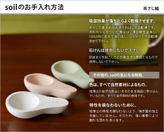 他の画像を見る 吸湿性に優れた珪藻土を使用したsoilの茶さじ。茶葉をすくうだけでなく、湿気を防ぎ新鮮な状態を保ってくれます。 soil 茶さじ 当店特別価格 ¥ 1,430 税込 在庫切れ 詳細を見る お気に入りに登録する
