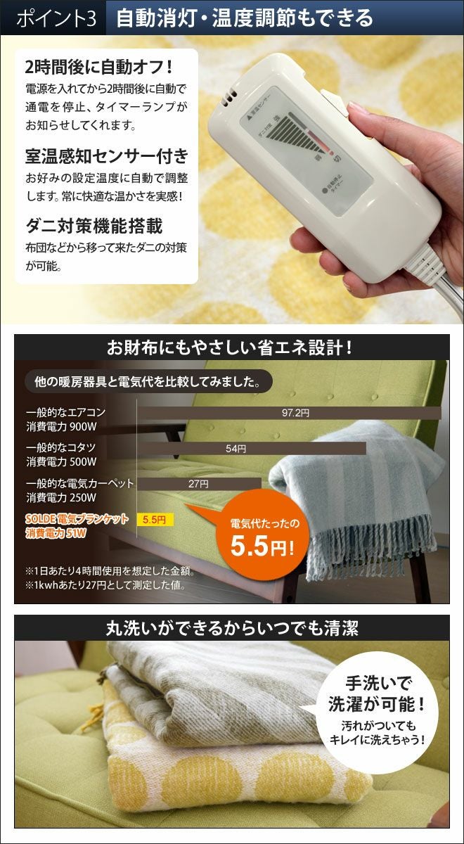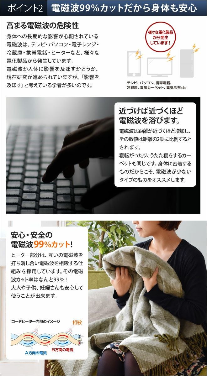 他の画像を見る 大判サイズだから膝にかければ足元まで、肩から掛ければ身体をすっぽり包んでくれます!電磁波99%の安心電気ブランケットです。 ソルデ エレクトリック ブランケット 電気ひざ掛け 当店特別価格 ¥ 10,165 税込 在庫切れ 詳細を見る お気に入りに登録する