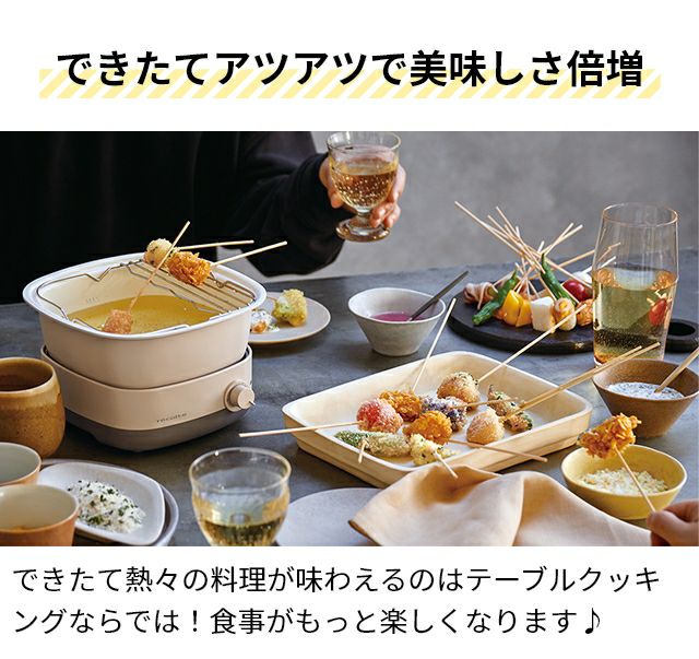 他の画像を見る その場で出来たて熱々の料理を楽しめる小型電気鍋。これ1台で、5つの調理「煮る・焼く・蒸す・揚げる・炊く」が可能!1人~2人分にぴったりなコンパクトサイズです。 【選べる2大特典】 レコルト 電気鍋 ポットデュオ キャレ RPD-4 グリル鍋 ホットプレート フライヤー 一人鍋 マルチクッカー 蒸し器 電気グリル鍋 調理鍋 一人用 焼肉 2人用 角型 小型 おでん おしゃれ 揚げ物 炊飯器 洗える recolte POT DUO carre 当店特別価格 ¥ 8,800 税込 詳細を見る お気に入りに登録する