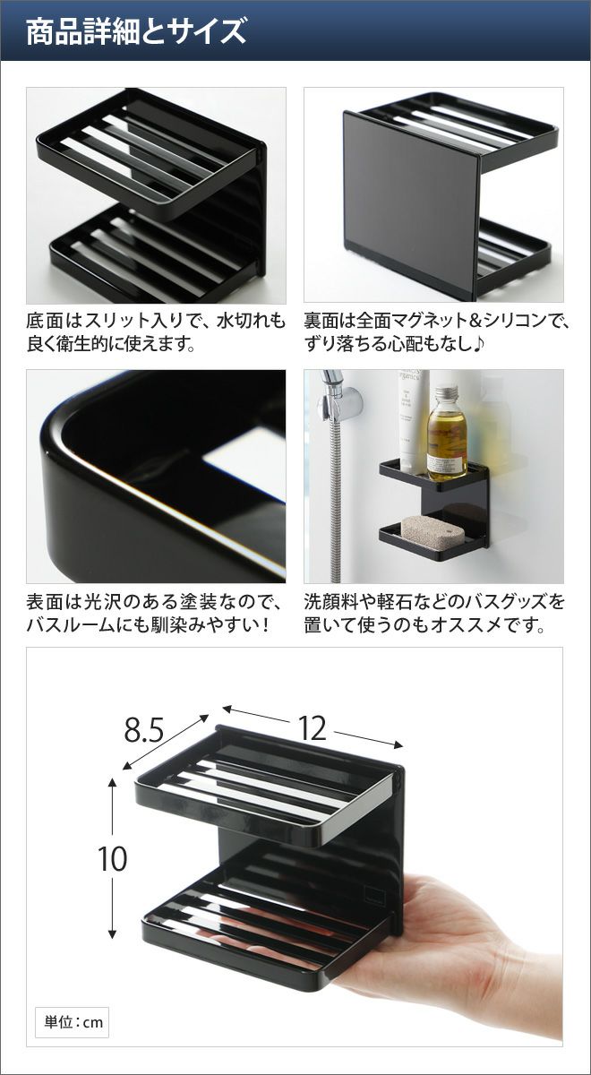 他の画像を見る 山崎実業/石鹸置き/石鹸トレー/石鹸ホルダー/石けん置き/ソープディッシュ/ホルダー/ソープトレイ/収納棚/小物置き/棚/マグネット/磁石/石鹸/マグネット収納/壁面収納/小物収納/お風呂/風呂/バスルーム/浴室/収納 山崎実業 石鹸置き 石鹸トレー 石鹸ホルダー 石けん置き ソープディッシュ ホルダー ソープトレイ 収納棚 小物置き 棚 マグネット 磁石 石鹸 マグネット収納 壁面収納 小物収納 yamazaki タワーシリーズ [tower タワー マグネットバスルームソープトレー 2段 3809 3810] 当店特別価格 ¥ 2,200 税込 詳細を見る お気に入りに登録する