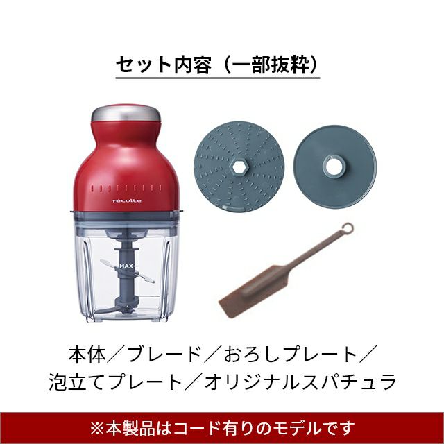 他の画像を見る 手軽に、瞬時に【刻む・混ぜる・練る・潰す・砕く・おろす・泡立てる】が出来てしまうフードプロセッサー。28種の個性的な料理が掲載されたレシピ本も付属します。 【選べる2大特典】 フードプロセッサー ブレンダー ミキサー アイスクラッシャー 大根おろし 離乳食 氷 砕く ホイップ 生クリーム 泡立て ひき肉 おしゃれ 500ml 7役 家電 キッチン [recolte レコルト Capsule Cutter Bonne カプセルカッター ボンヌ RCP-3] 当店特別価格 ¥ 7,150 税込 詳細を見る お気に入りに登録する