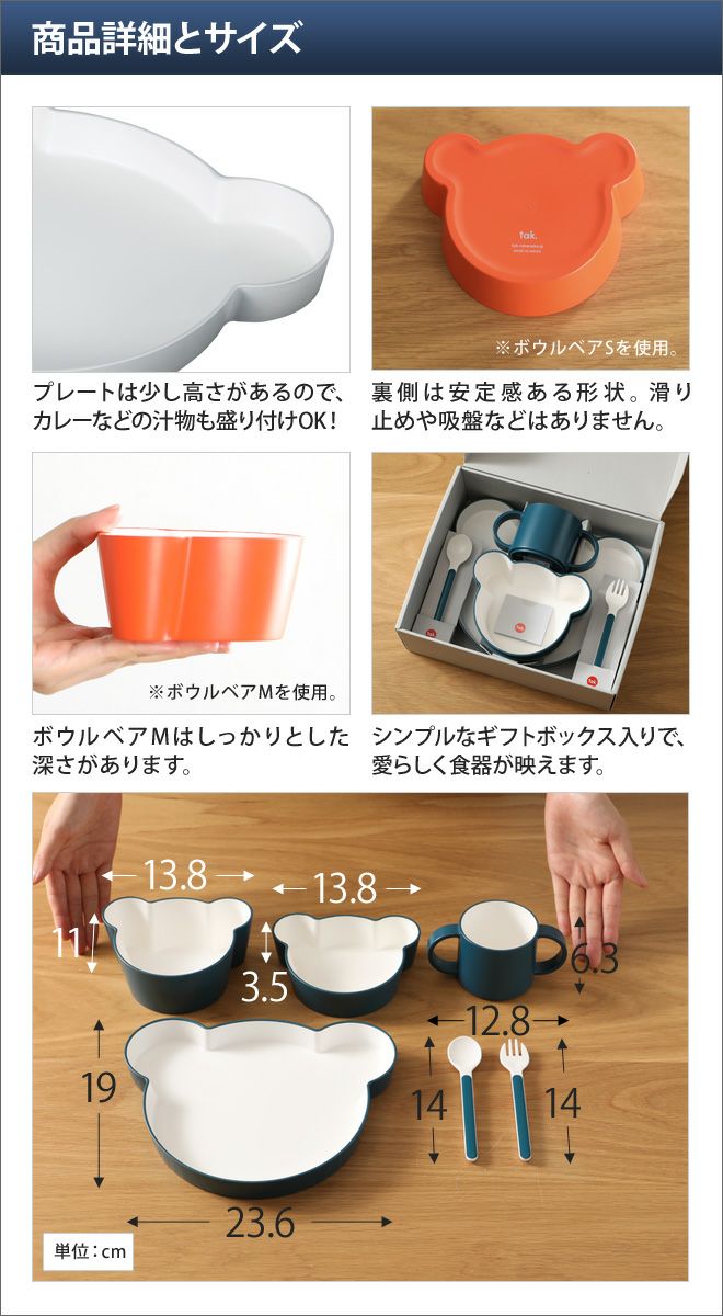 他の画像を見る 子ども用食器セット/ベビー食器/クマ/くま/キッズプレート/お皿/ボウル/マグ/コップ/スプーン/フォーク/カトラリー/食洗機対応/レンジ対応/離乳食/出産祝い/かわいい/シンプル/日本製/tak./キッズディッシュ/ギフト 子ども用食器セット キッズディッシュ ギフトボックス カトラリー ベア ベビー食器 クマ くま キッズプレート お皿 ボウル マグ コップ スプーン フォーク カトラリー 食洗機対応 レンジ対応 離乳食 出産祝い かわいい シンプル 日本製 tak. KIDS DISH 当店特別価格 ¥ 6,600 税込 詳細を見る お気に入りに登録する