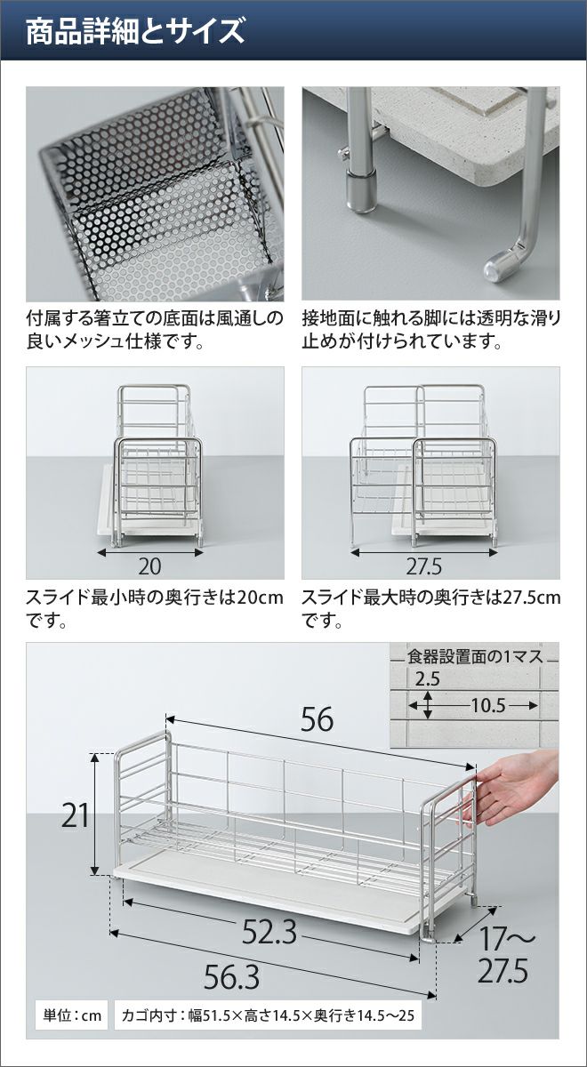 他の画像を見る 水切りカゴと吸水トレイの最強タッグ。食器を置いたそばから水滴を吸水し、水垢汚れなどを発生させません。 KAWAKI 水切りラック スライドタイプ 【選べる豪華特典】 当店特別価格 ¥ 14,630 税込 詳細を見る お気に入りに登録する