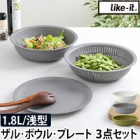 ライクイット 【選べる豪華特典】 ザル セット 米とぎにも使えるザルとボウル プレートセット ボウル 耐熱ボウル 水切りボウル プレート 皿 日本製 耐熱 電子レンジ かわいい 樹脂 北欧 米とぎ 丸 食器 ざる おしゃれ プラスチック キッチン 浅型 米研ぎ 薄型 調理器具 挟まらない like-it
