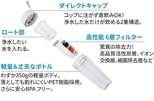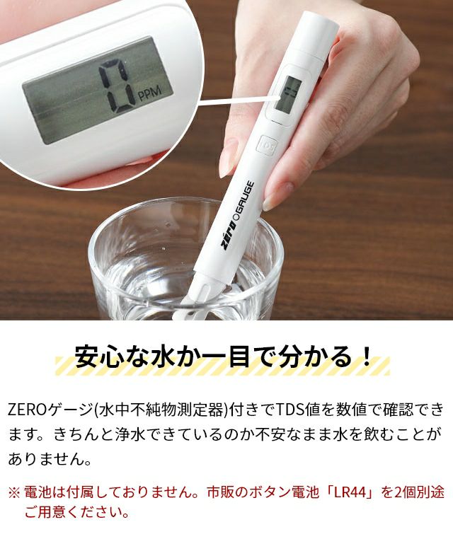 他の画像を見る 水道水を注ぐだけで不純物0ppmの純水に。携帯型浄水器ZEROボトルと水質測定器のセット。赤ちゃんのミルクやアウトドア、防災備蓄にも最適な、持ち運べる高性能浄水ボトル。 ゼロボトル ZEROゲージセット BL350WH ボトル型浄水器 浄水ポット 浄水器 浄水機 浄水ボトル カートリッジ付き 井戸水 水筒型 塩素除去 高機能フィルター マイボトル 正規品 携帯用 一人暮らし キャンプ 災害 赤ちゃん ZERO BOTTLE 当店特別価格 ¥ 15,510 税込 詳細を見る お気に入りに登録する