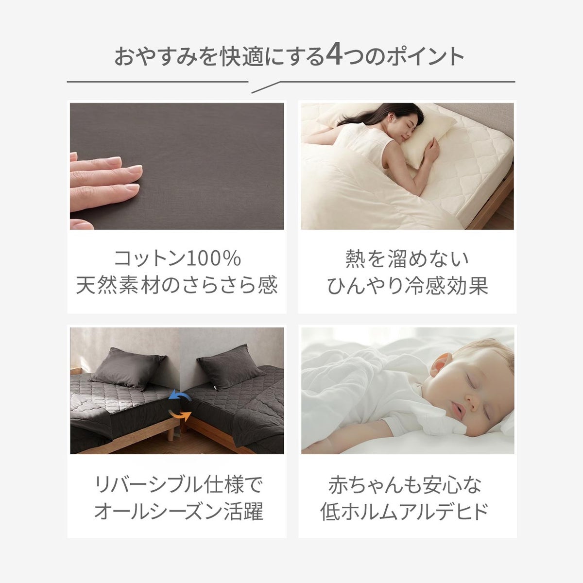 他の画像を見る 綿100%ながらQ-MAX0.377の冷感を実現したBOXシーツ。化学繊維特有のベタつきが苦手な方も嬉しい、天然素材の優しさと涼しさを両立した1枚です。 ボックスシーツ ワイドキング 敷きパッド 一体型 綿100 春 夏 秋 冬 オールシーズン 洗える コットン タオル パイル 速乾 子供 赤ちゃん 春用 春夏用 接触冷感 夏用 ひんやり 夏布団 丸洗い yucuss ユクスス さらっとひんやり 綿100% 敷パッド一体型 リバーシブル 当店特別価格 ¥ 8,980 税込 詳細を見る お気に入りに登録する