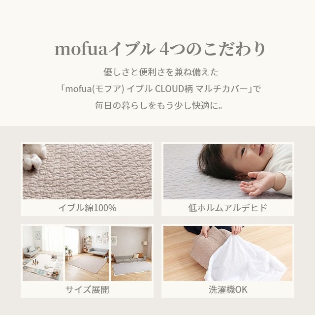 他の画像を見る 綿100%の優しい肌触りとCLOUD柄が可愛い、mofuaのイブルソファパッド。滑り止め付きでズレにくく、丸洗いOK。お子様やペットがいる家庭の汚れ防止に最適です。 モフア ソファパッド イブル 3人掛け 65×200cm mofua CLOUD柄 洗える キルティング 赤ちゃん ベビー 北欧 おしゃれ かわいい 丸洗い ソファカバー 座布団 オールシーズン 清潔 シンプル キズ防止 汚れ対策 滑り止め 敷きパッド 当店特別価格 ¥ 3,980 税込 詳細を見る お気に入りに登録する