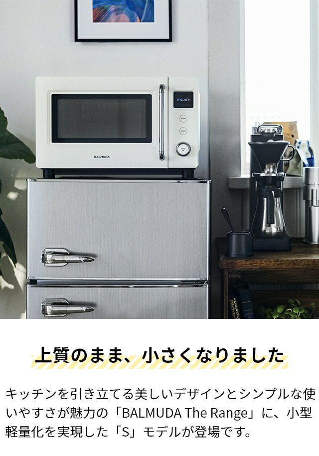 他の画像を見る 上質なシンプルデザイン、小型軽量の電子レンジ。機能は直感的に使える5つのモード。操作音はギターのサウンドで遊び心があり、生活に気持ちよく溶け込みます。 電子レンジ BALMUDA The Range S (バルミューダ ザ・レンジ S) KRN01JP 小型 コンパクト おしゃれ シンプル デザイン家電 キッチン 調理家電 フラット ごはん ご飯 解凍 単機能 一人暮らし 500W 600W 800W 900W ブラック 黒 ホワイト 白 当店特別価格 ¥ 39,600 税込 詳細を見る お気に入りに登録する