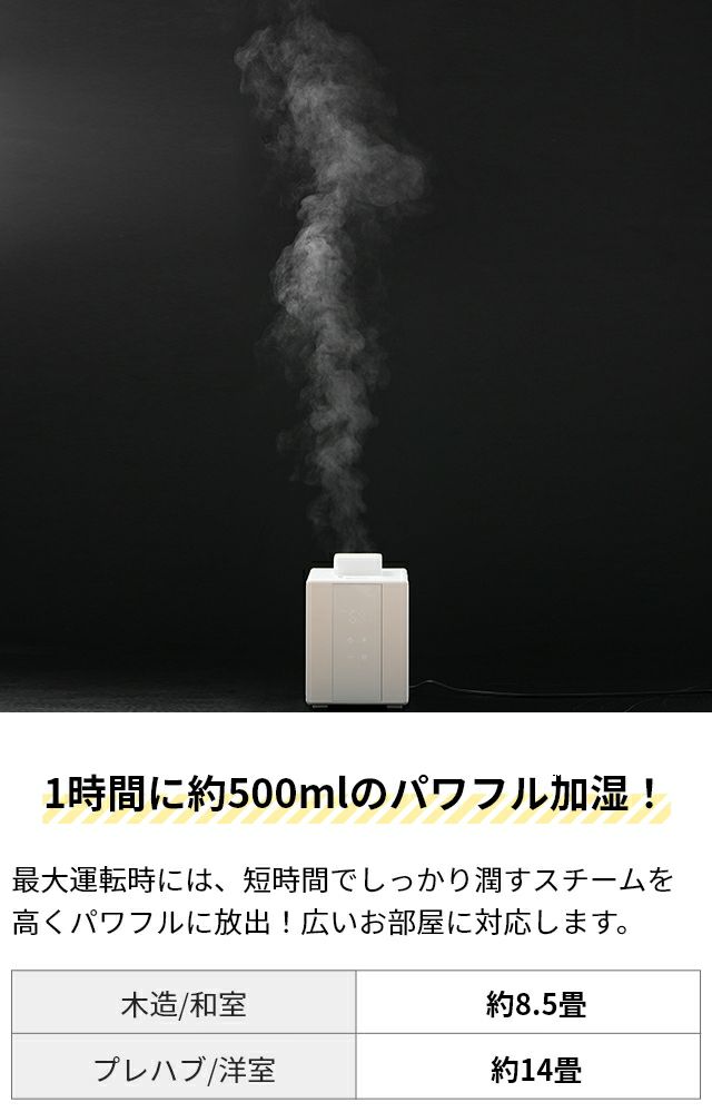 他の画像を見る 加熱ミストだから清潔、室温を下げない、床が濡れにくいスチーム式加湿器。湿度センサーによる自動加湿で最適な湿度を保ち、最大14畳を潤します。 ドウシシャ 加湿器 スチーム式 湿度センサー付き スチーム加湿器 KSA-501 スチーム 加熱式 大容量 上部給水 小型 卓上 強力 パワフル リビング オフィス 寝室 ベッドサイド おしゃれ 北欧 静音 ミスト 保湿 DOSHISHA 当店特別価格 ¥ 11,880 税込 詳細を見る お気に入りに登録する