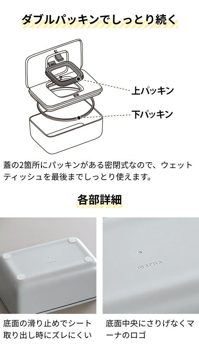 他の画像を見る ワンタッチ開閉ができるシートケース。トイレシートやおしりふきなどウェットシートが袋ごと入り便利。パッキンで密閉されるので乾燥しにくく最後までしっとり使えます。 マーナ ウェットティッシュ ケース シートケース W649 ワンタッチ 乾かない 密閉 おしりふき ウェットティッシュケース ウェットシート トイレシート 除菌シート お掃除シート 袋ごと 袋のまま パッキン 乾燥防止 ふた 蓋付き おしゃれ シンプル marna 当店特別価格 ¥ 2,180 税込 詳細を見る お気に入りに登録する