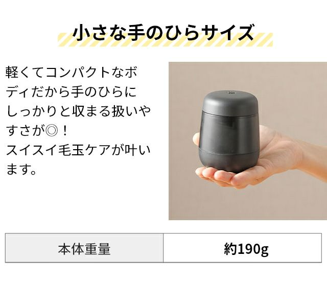 他の画像を見る コンセントのない場所でもサッと取り出せるコードレス充電式。 ふと目につく毛玉、気になるけどちょっと面倒だなと思っていた衣類のお手入れがしやすくなりますよ。 プラスマイナスゼロ 毛玉クリーナー XRL-H010 毛玉取り器 毛玉とり けだまとり ケダマトリ 毛玉カット 毛玉取り機 小さいサイズ コンパクト ニット 電動 布ソファー USB充電式 コードレス おすすめ おしゃれ 強力 6枚刃 ±0 Lint Remover 当店特別価格 ¥ 3,300 税込 詳細を見る お気に入りに登録する