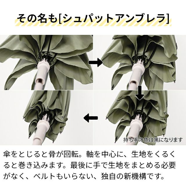 他の画像を見る ベルトのない、閉じるだけでスリムにまとまる傘です。最後に手で生地をまとめたり、ベルトで留める必要がなく、手を濡らさず、もたつく煩わしさもありません。 マーナ 【選べる2大特典】 傘 シュパット アンブレラ 58cm 雨傘 長傘 晴雨兼用 手が濡れない 畳める ベルトなし レディース メンズ 男女兼用 無地 おしゃれ かわいい シンプル 車 大人 スライド 16本骨 母の日 撥水 UVカット marna Shupatto 当店特別価格 ¥ 6,380 税込 詳細を見る お気に入りに登録する