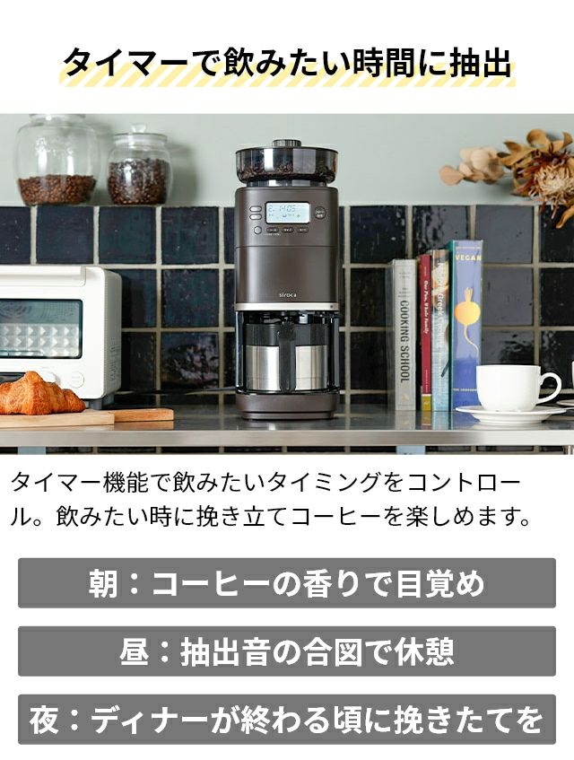 他の画像を見る カフェばこ PROに保温力の高いステンレスサーバーモデルが登場!急冷式アイスコーヒーも手軽にでき、楽しみ方がさらに広がります。 シロカ 【選べる豪華特典】 コーン式全自動コーヒーメーカー カフェばこ PRO ステンレスサーバーモデル SC-C271 ミル機能付き アイスコーヒー対応 大容量 ドリップ 一杯から ステンレスサーバーで保温 豆から 粉対応 家庭用 はずせる水タンク siroca 当店特別価格 ¥ 32,780 税込 詳細を見る お気に入りに登録する