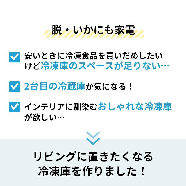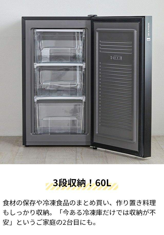 他の画像を見る 家電らしさを逸脱したスタイリッシュなデザインと、便利な機能もしっかり持ち合わせた冷凍庫。 ライフオンプロダクツ 【選べる2大特典】 ノンフロン冷凍庫 60L LPRKC001 スリムタイプ おしゃれ 小型 家庭用 引き出し付き 前開きタイプ 耐熱トップテーブ ミニ トレー マイナス 20 度以下 直冷式 Life on Products メーカー取寄品 当店特別価格 ¥ 55,000 税込 詳細を見る お気に入りに登録する