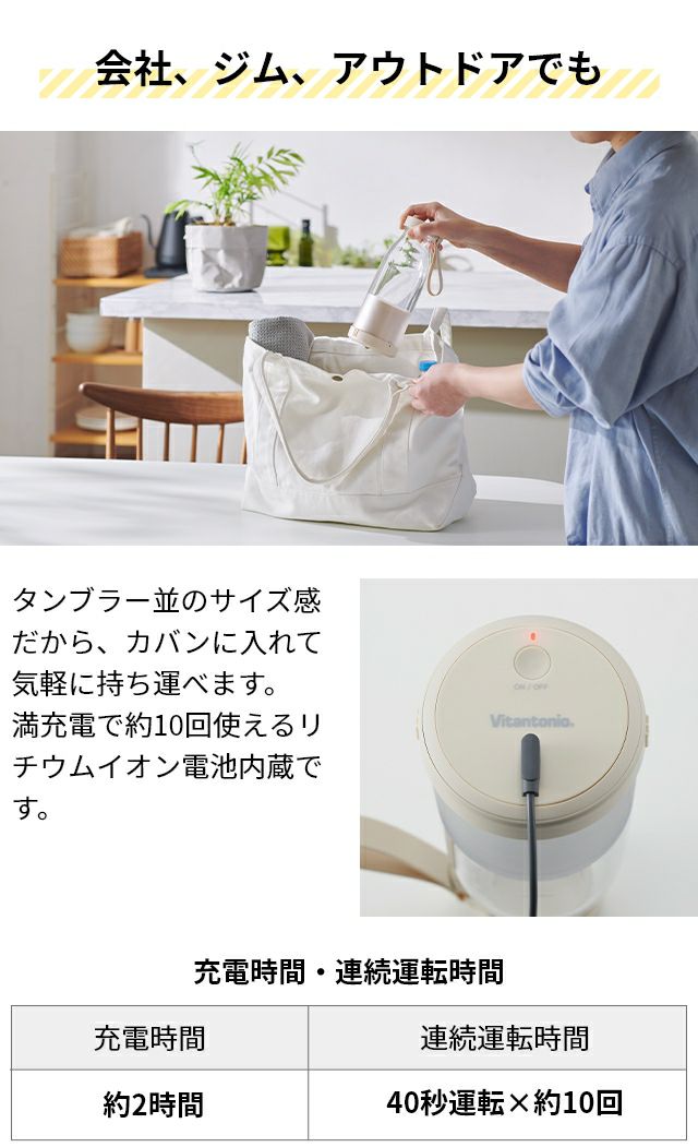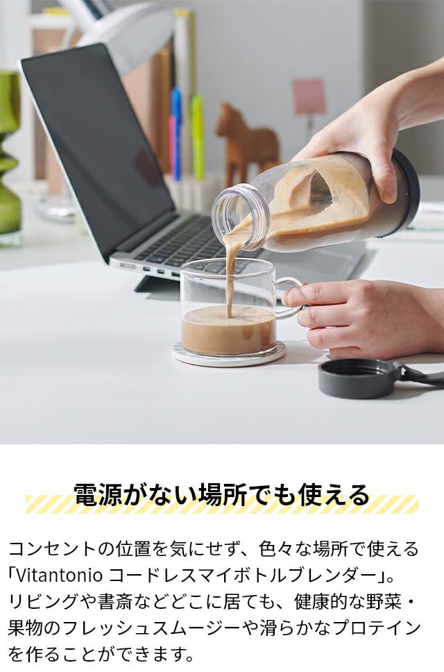 他の画像を見る コンセントの位置を気にせず、色々な場所で使えるコードレスのブレンダー。リビングなどどこに居ても、健康的な野菜・果物のスムージーや滑らかなプロテインを作れます。 ビタントニオ 【選べる豪華特典】 コードレスマイボトルブレンダー VBL-2000 ミキサー コードレス 充電式 スリム 小型 コンパクト 氷 砕ける 氷も砕ける 洗いやすい お手入れ簡単 ボトル 持ち運び おしゃれ 朝食 スムージー Vitantonio CORDLESS MY BOTTLE BLENDER 当店特別価格 ¥ 6,930 税込 詳細を見る お気に入りに登録する