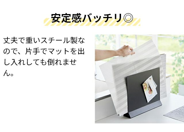 他の画像を見る ランチョンマットやトレーを浮かせて収納できるスタンド。スリムなデザインなのでキッチンのちょっとした隙間を有効活用できます。 山崎実業 ランチョンマットスタンド タワー 1999 2000 収納ラック ホルダー 収納ボックス ケース 隙間 ランチョンマット入れ スリム シンプル モダン おしゃれ おすすめ tower ランチョンマット収納 隙間収納 キッチン収納 yamazaki タワーシリーズ 当店特別価格 ¥ 3,630 税込 詳細を見る お気に入りに登録する