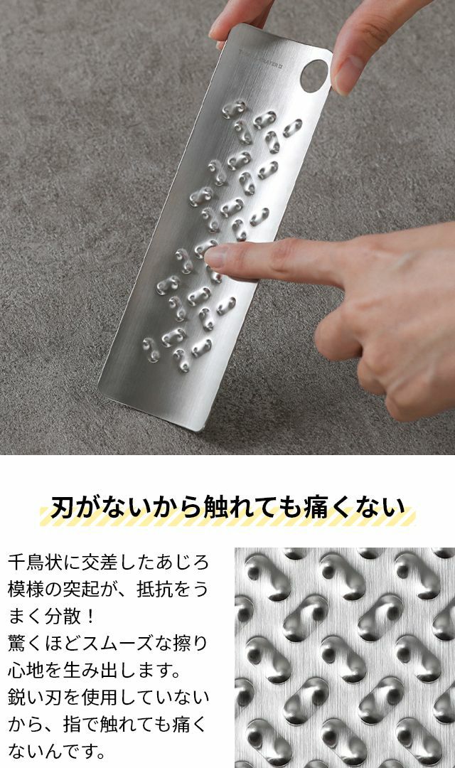 他の画像を見る 燕三条発!刃を使わないおろし金はすりおろしのときに手を切らず安心、安全。にんにくなど小さな食材も最後まで擦り切れる!洗う時のスポンジも引っかからずお手入れ簡単♪ トミタ おろし器 トミタ式おろし金2 TMO-002 チーズグレーター おろしがね グレーター 生わさび しょうが ステンレス 長芋 日本製 にんにく チーズ削り 山芋 とろろ 大根おろし 小 洗いやすい 安全 燕三条 グッドデザイン ◆メール便配送◆ 当店特別価格 ¥ 3,960 税込 詳細を見る お気に入りに登録する