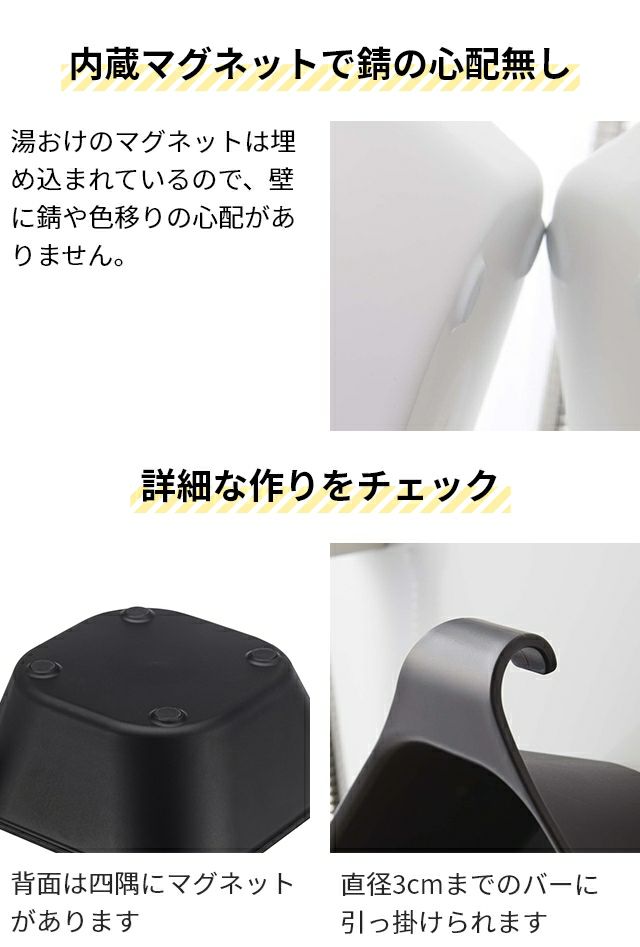 他の画像を見る マグネットでお風呂に浮かせて収納できるバスチェア、手おけ、湯おけのセット。桶は掛けておけるフック付きで、水切れよく乾きやすいので衛生的です。椅子も座り心地◎。 山崎実業 マグネット風呂イス SH25 + マグネット手おけ + マグネット&引っ掛け湯おけ セット タワー 4903208036078 4903208036085 風呂椅子 風呂桶 湯桶 手桶 マグネット 風呂いす tower 壁面収納 yamazaki タワーシリーズ 当店特別価格 ¥ 8,250 税込 詳細を見る お気に入りに登録する