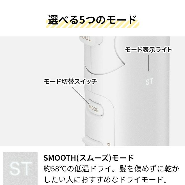 他の画像を見る 特殊フィルターを搭載した、smooth EXシステムのマイナス電子+低温+大風量+赤外線で、しっとり、つるつるとした、まとまりのある髪に導きます。 モッズ・ヘア 【特典付き】 ヘアドライヤー 大風量 プリヴィレージュ スムーズEX MHD-1263 軽量 遠赤外線 折りたたみ式 マイナスイオン マイナス電子 熱くない 低温 スタイリング 美髪 傷まない 温度調節 髪に優しい つやつや サラサラ mod's hair 当店特別価格 ¥ 19,800 税込 詳細を見る お気に入りに登録する