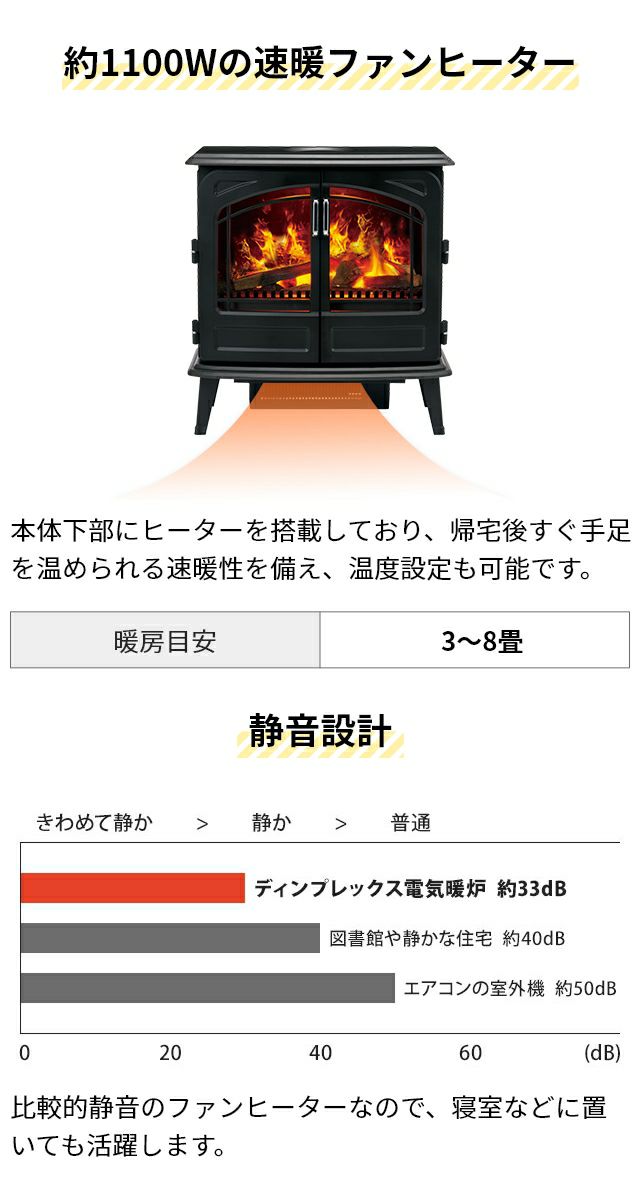 他の画像を見る ゆらめく炎の癒しを1年中自宅で再現できる「インテリア暖炉」。火を使わず、LEDの光でリアルな擬似炎を作るため安心安全。電気で動き、工事不要で設置できます。 ディンプレックス 暖炉型 ファンヒーター 電気暖炉 オプティフレーム ジャズ3 JAZIII12J ヒーター 暖炉型ファンヒーター 足元ヒーター ストーブ おしゃれ アンティーク レトロ 静音 LED リビング Dimplex Opti-Flame Jazz 3 当店特別価格 ¥ 54,800 税込 詳細を見る お気に入りに登録する