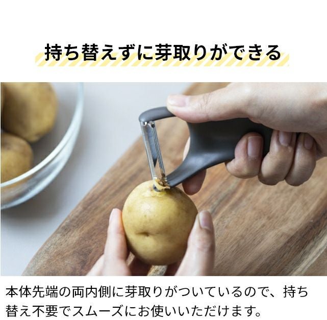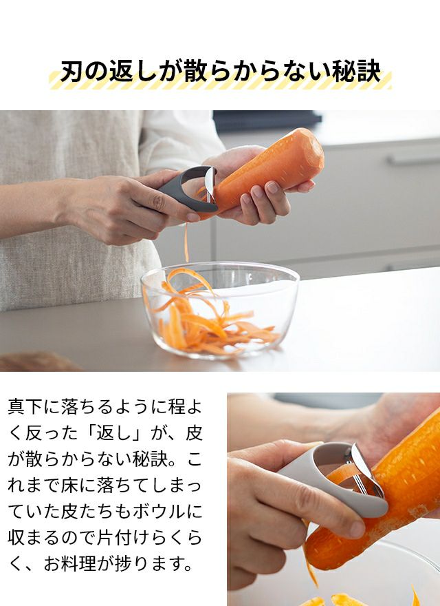 他の画像を見る するりと剥けてすとんと落ちるピーラー。刃に返しがついているので、剥いた皮がそのまま真下へ落ちて散らかりません。手になじむ優しい丸みで使いやすい仕様です。 マーナ 皮むき器 ピーラー きほんのキッチンツール マーナのきほん ピューラー 皮むき機 片手 りんご 安全 おすすめ 皮むき 高級 人参 刃 じゃがいも 生姜 キウイ フルーツ Y型 おしゃれ Y字 芽取り スライサー 野菜 ステンレス刃 marna 当店特別価格 ¥ 980 税込 詳細を見る お気に入りに登録する