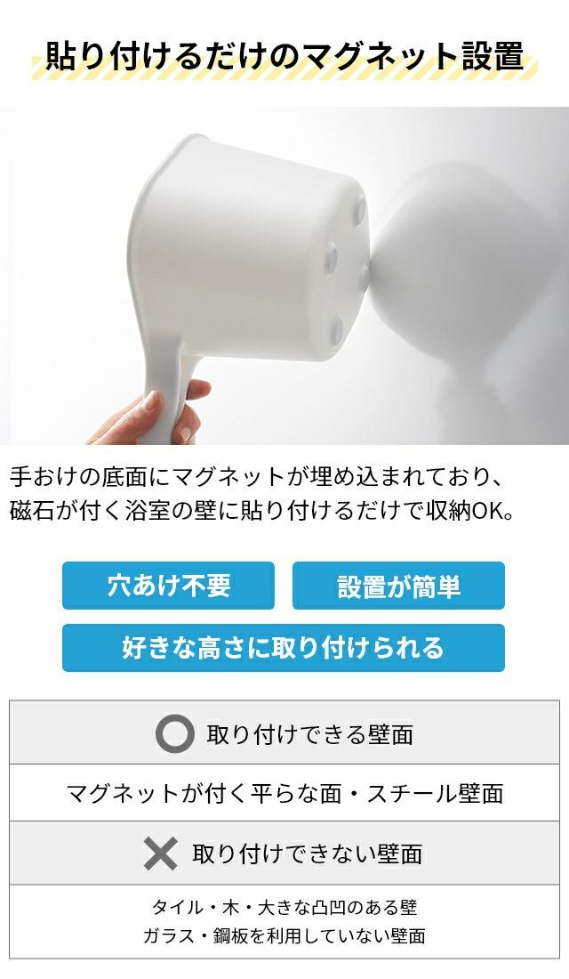 他の画像を見る 手おけをマグネットで壁面収納!置き場所に困らず、底のヌメリや浴室の水アカ予防に衛生的。穴つきでフックに引っ掛けての収納も可能です。 山崎実業 風呂桶 マグネット手おけ タワー 3607 3608 湯桶 風呂おけ ふろおけ 手桶 マグネット 磁石 浮かす 浮かせる フック穴 引っ掛ける 清潔 壁面 片手桶 シンプル tower 壁面収納 マグネット収納 浮かせる収納 yamazaki タワーシリーズ 当店特別価格 ¥ 1,760 税込 詳細を見る お気に入りに登録する
