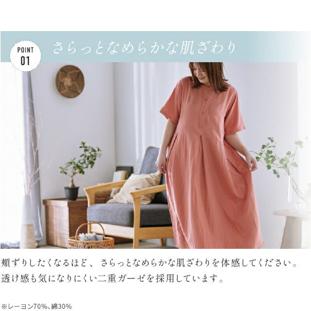 他の画像を見る なめらかな肌触りと軽やかな着心地が魅力のガーゼワンピース。竹を原料とした再生繊維を使用し、高い通気性と、優れた吸放湿性を実現。汗ばむ季節もさらっと快適。 yucuss ルームワンピース 竹レーヨンのガーゼワンピース フリーサイズ 部屋着 ガーゼパジャマ ワンピースパジャマ 寝巻き ルームウェア ナイトウェア 春夏 ポケット レディース 半袖 可愛い おしゃれ おすすめ かわいい 夏用 涼しい ユクスス 当店特別価格 ¥ 4,780 税込 詳細を見る お気に入りに登録する