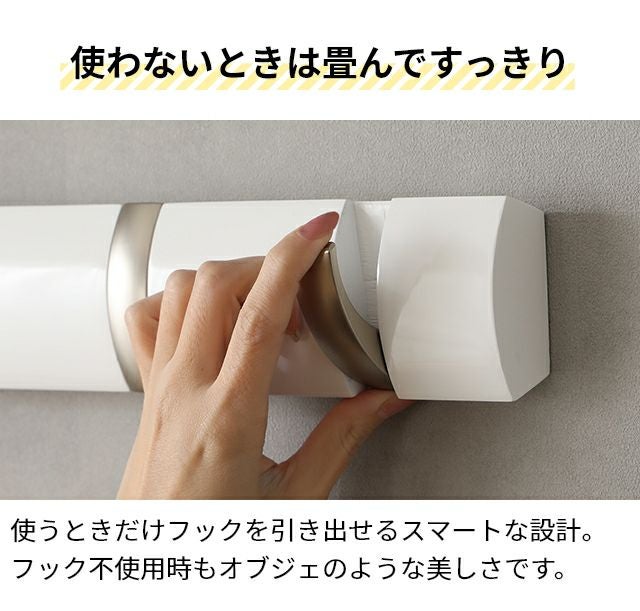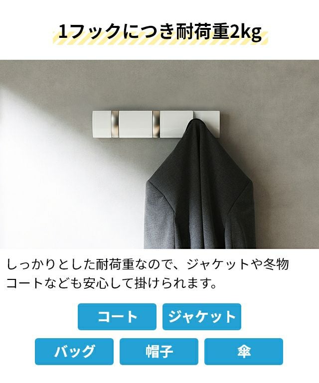 他の画像を見る お好きな高さに壁面設置できるコートハンガー。1フックにつき耐荷重2kgのしっかりとした作り。フックは折りたたみ式なので、使わないときはすっきりとした佇まいです。 アンブラ 壁掛けフック フリップフック 3連 コートハンガー ハンガーフック コート掛け 折りたたみフック ウォールフック ハンガーラック 洋服掛け おしゃれ 壁付け シンプル 省スペース 木製 石膏ボード 折り畳み式 玄関 umbra FLIP 3 WALL HOOK 当店特別価格 ¥ 3,980 税込 詳細を見る お気に入りに登録する
