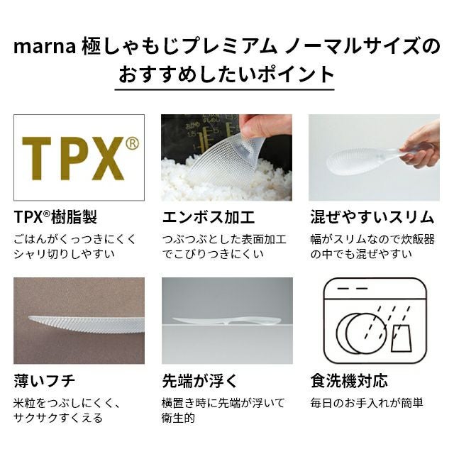 他の画像を見る お米のプロと開発した理想のしゃもじ。フッ素樹脂に次ぎ剥離性の高いTPX(R)樹脂を使用することで、ご飯が付きにくく、キレイが長持ち!スリム幅できれいによそえます。 マーナ 極しゃもじプレミアム ノーマルサイズ 杓文字 杓子 くっつかない おしゃれ 食洗機対応 国産 ご飯 洗いやすい 浮かせる かわいい 米がつかない つぶつぶ 横置き ご飯がつかない ぶつぶつ まぜ ごはん 日本製 エンボス加工 樹脂 米粒 marna 当店特別価格 ¥ 1,078 税込 詳細を見る お気に入りに登録する