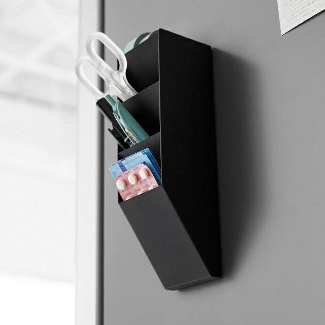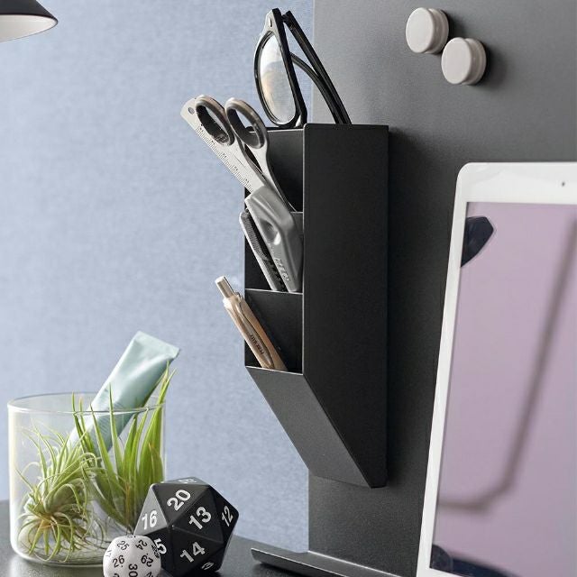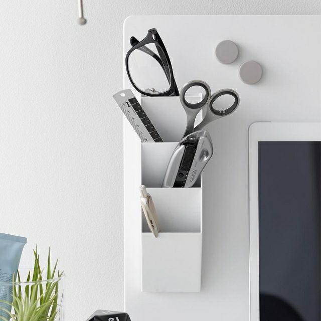 他の画像を見る マグネットで壁付けするスリムな縦型のペンケース。スチールパネルや冷蔵庫にピタッとくっつきます。ペン、ハサミやメガネなど様々な小物を入れてサッと出し入れできます。 山崎実業 マグネットペンスタンド タワー スチールパネル対応 4903208100960 4903208100977 ペン立て 小物入れ 卓上収納ボックス メガネスタンド コンパクト マグネット おしゃれ スリム 卓上 tower デスク収納 小物収納 yamazaki タワーシリーズ 当店特別価格 ¥ 1,650 税込 詳細を見る お気に入りに登録する