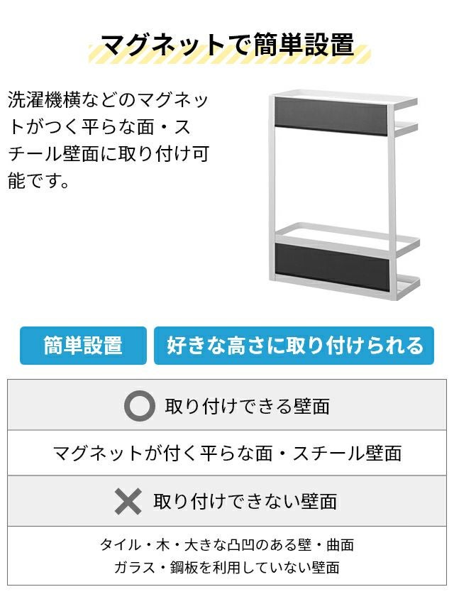 他の画像を見る デッドスペースになりがちな洗濯機横に、マグネットで簡単に設置できる収納ラック。たっぷり収納できる2段式で、大容量の詰め替えストックも置くことができます。 山崎実業 ランドリーラック 洗濯機横マグネット収納ラック タワー 2段 1800 1801 収納棚 棚 おしゃれ 脱衣所 スリム すき間収納 tower 洗濯機横収納 マグネット収納 ランドリー収納 隙間収納 浮かせる収納 yamazaki タワーシリーズ 当店特別価格 ¥ 3,960 税込 詳細を見る お気に入りに登録する