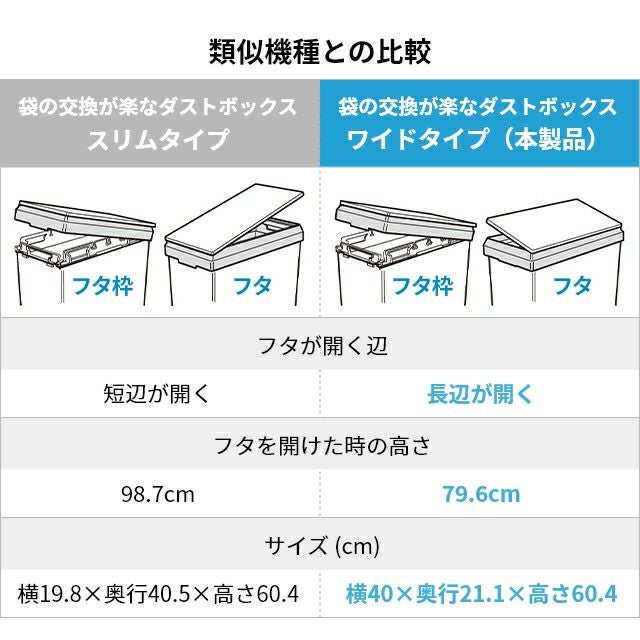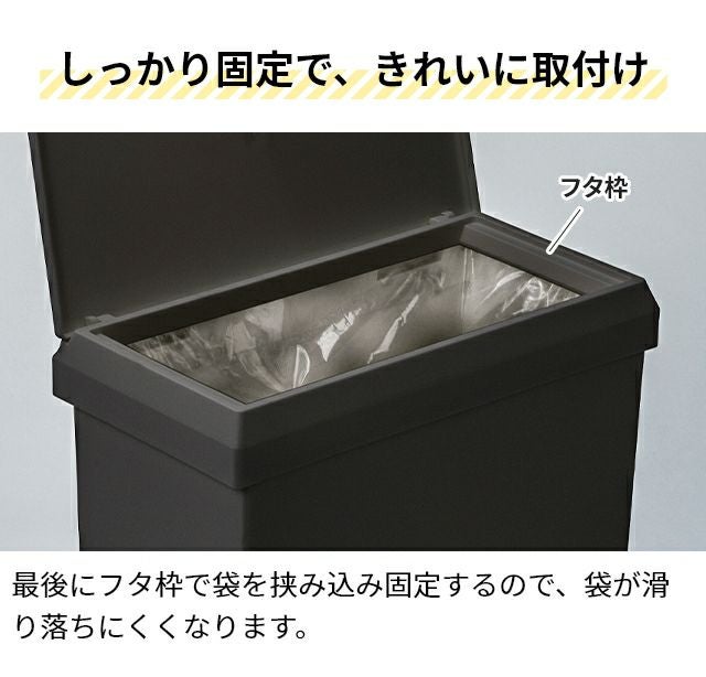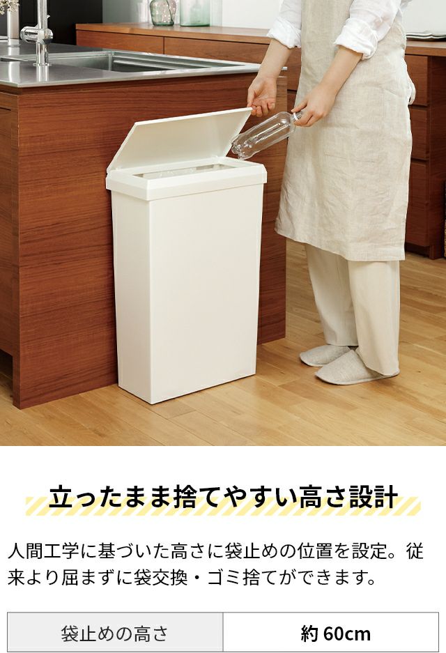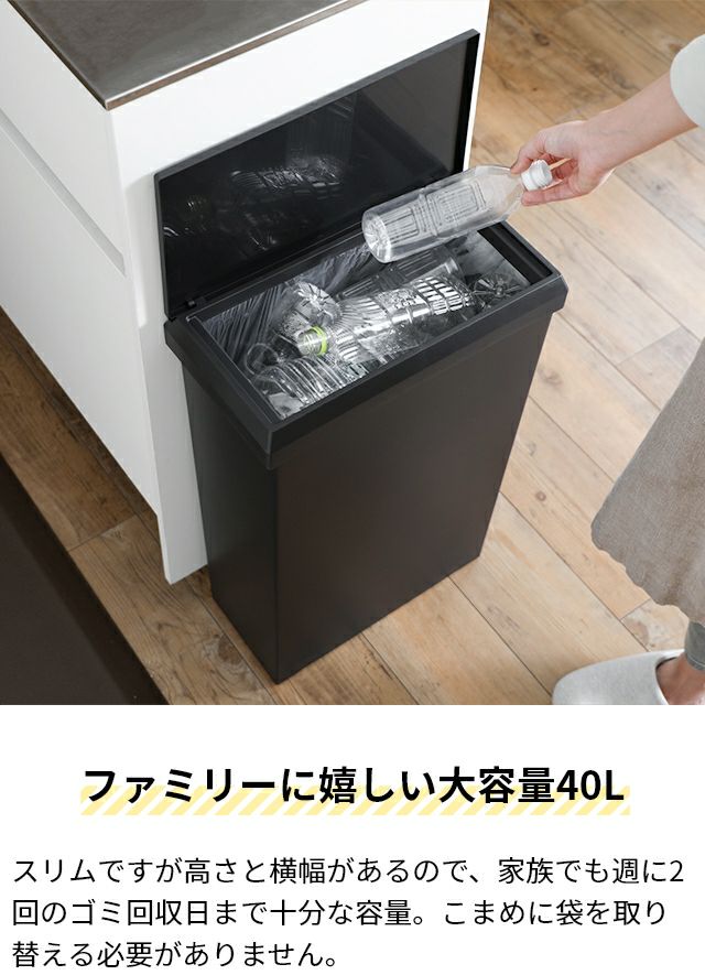 他の画像を見る 袋をかけて、フタ枠で挟むだけの最短10秒!ゴミ袋交換が簡単・素早く・きれいにできる40Lごみ箱。キッチンの隙間に置ける奥行約21?のスリム設計。キャスター付きです。 ソロウ ゴミ箱 ふた付き 通路で使える ワイドダストボックス ハンドオープン40L 蓋付きゴミ箱 くず入れ 45リットル袋 日本製 おしゃれ 分別 北欧 大容量 キャスター付き インテリア キッチン 45l袋 抗菌 シンプル 横長 横開き 横型 リビング スリム SOLOW 当店特別価格 ¥ 4,400 税込 詳細を見る お気に入りに登録する