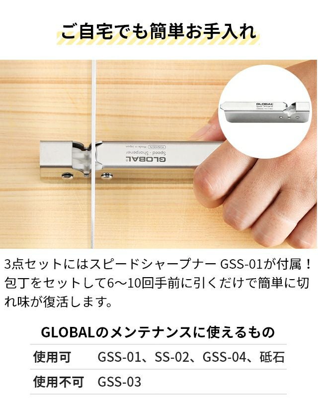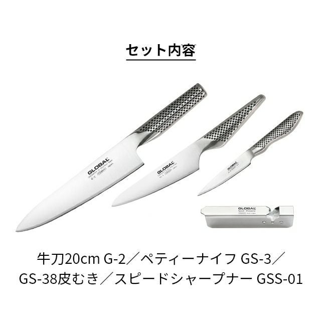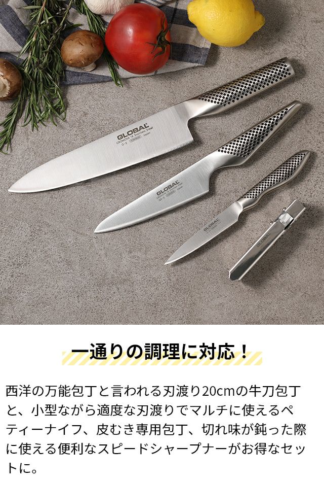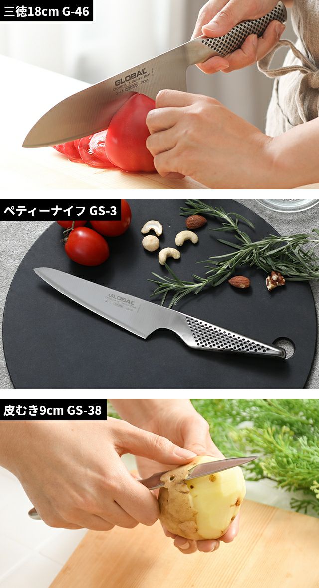 他の画像を見る 鋭い切れ味・清潔で衛生的・高いデザイン性と三拍子揃った日本の包丁ブランドGLOBAL。「三徳3点セット」は、三徳包丁18cmとペティーナイフ、シャープナーのセットです。 【無料ラッピング】【豪華特典付き】グローバル 三徳3点セット GST-B46 三徳包丁 ステンレス包丁 包丁セット 小型包丁 左利き 国産 日本製 高級 オールステンレス 燕三条 新潟 GLOBAL 包丁 [三徳包丁18cm G-46+ペティーナイフ GS-3+スピードシャープナー GSS-01] 当店特別価格 ¥ 19,800 税込 詳細を見る お気に入りに登録する