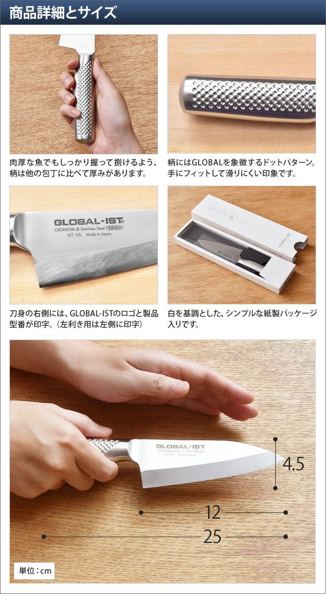 他の画像を見る 小出刃/包丁/小出刃包丁/オールステンレス包丁/ステンレス/小さめ/左利き/日本/右利き/グローバル/小さい/出刃/日本製/片刃/オールステンレス/魚/刺身/GLOBAL/グローバル/GLOBAL-IST/グローバルイスト/小出刃12cm 【無料ラッピング】【豪華特典付き】GLOBAL-IST 小出刃12cm IST-05 右利き用 左利き用 当店特別価格 ¥ 11,000 税込 詳細を見る お気に入りに登録する