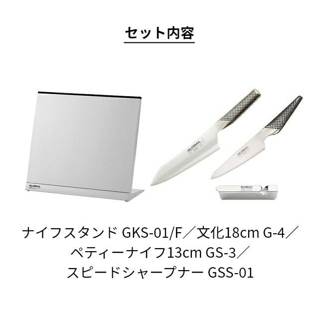 他の画像を見る AQUA限定!グローバル包丁特別セット。美しく包丁を収納できる、ナイフスタンドも付いてくる便利なセットです。 グローバル 【豪華特典付き】 文化3点・ナイフスタンドセット (文化包丁18cm+ペティナイフ+スピードシャープナー+ナイフスタンド) GST-B4 GKS-01/F グローバル包丁 キッチンナイフ 日本製 オールステンレス 切れ味 GLOBAL 当店特別価格 ¥ 31,680 税込 詳細を見る お気に入りに登録する