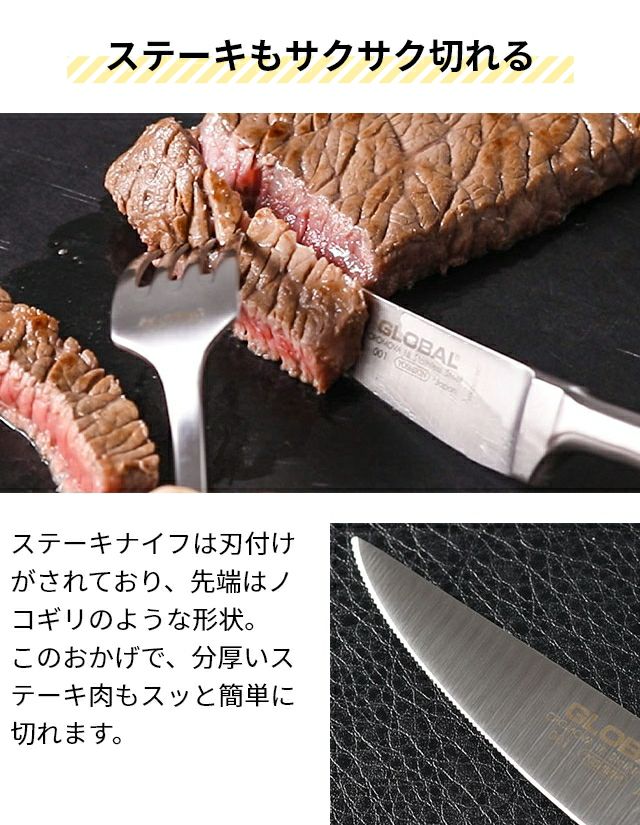 他の画像を見る いつもの食事を特別なものに演出してくれる【包丁のGLOBAL】特製カトラリーセット。デザイン性・切れ味・使い勝手に優れた逸品。 【無料ラッピング】【豪華特典付き】グローバル ステーキナイフ&フォークセット カトラリーセット テーブルナイフ ギフト よく切れる 手入れしやすい 結婚祝い 日本製 人気 ステンレス バーベキュー 燕三条 食器 おしゃれ GLOBAL 当店特別価格 ¥ 7,700 税込 詳細を見る お気に入りに登録する