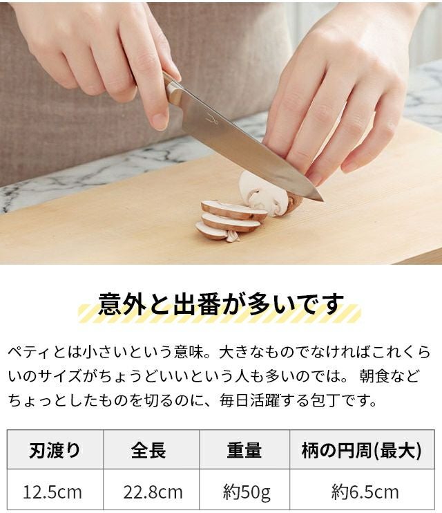 他の画像を見る 鍛冶の町・燕三条の老舗が手掛ける、小回りの利くペティナイフ。錆びにくいSLD鋼と抗菌炭化木のハンドルを採用。切れ味とデザイン性を兼ね備え、ギフトにも最適です。 タダフサ 【豪華特典付き】 包丁 万能125mm ペティ 単品 HK-3 ペティナイフ 庖丁工房タダフサ 小型包丁 燕三条 12.5cm 一人暮らし おしゃれ 軽い 左利き 右利き 肉 スライス 野菜 よく切れる 日本製 おすすめ 高級 当店特別価格 ¥ 12,100 税込 詳細を見る お気に入りに登録する