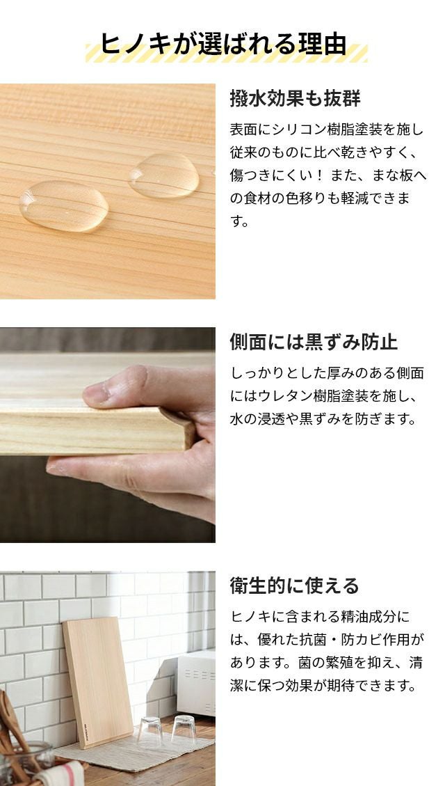 他の画像を見る GLOBAL包丁に最適なヒノキまな板。撥水加工で黒ずみを防止。当店限定の半月の形をした「D型」モデルは、限られたスペースを有効活用できるアイデア形状。 【豪華特典付き】 まな板 カッティングボード ひのき 大きい 日本製 長方形 おしゃれ 丈夫 木製 木目 大きめ おしゃれ 抗菌 ナチュラル 天然木 ウッド 木 キッチン ヒノキ [GLOBAL グローバル カッティングボード Large] 当店特別価格 ¥ 5,720 税込 詳細を見る お気に入りに登録する