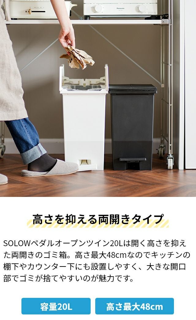 他の画像を見る 高さを抑えた両開きペダル式ゴミ箱20L2個セット ソロウ 【選べる豪華特典】 ゴミ箱 ペダル式 ペダルオープンツイン 20L 2個セット SOLOW-20L-2SET ペダル式ゴミ箱 ゴミ箱 ダストボックス 20l 足踏み スリム 蓋付き 両開き 横開き 分別 棚下 キャスター フタ付き 日本製 バタフライ 袋止め SOLOW 当店特別価格 ¥ 7,040 税込 詳細を見る お気に入りに登録する