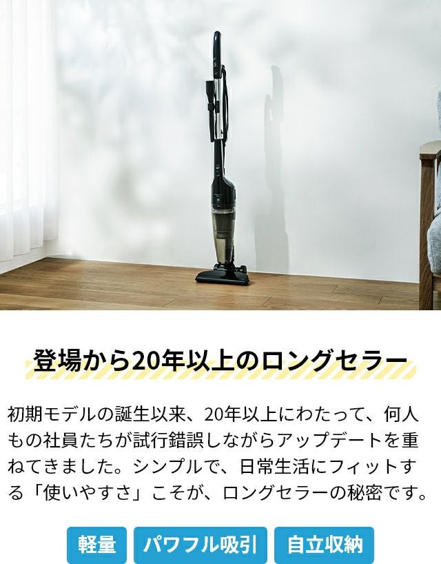 他の画像を見る 軽さとパワーを兼ね備えた、コード式スティッククリーナー。スティック&ハンディの2wayで自立式のスリムなボディ。シンプルで使いやすいロングセラーの掃除機です。 ツインバード サイクロン スティック型クリーナー TC-E123 掃除機 スティック型掃除機 スティッククリーナー ハンディクリーナー サイクロン コード式 軽量 強力吸引 2way 吸引力 コンパクト すきまノズル スリム 一人暮らし TWINBIRD 当店特別価格 ¥ 5,980 税込 詳細を見る お気に入りに登録する