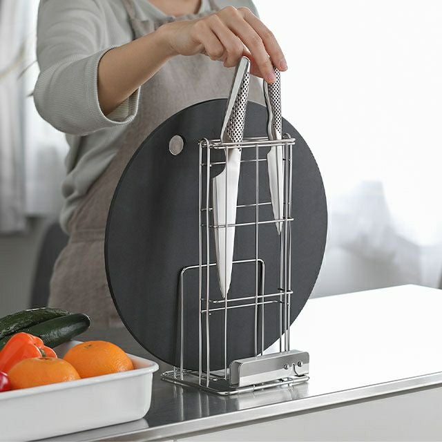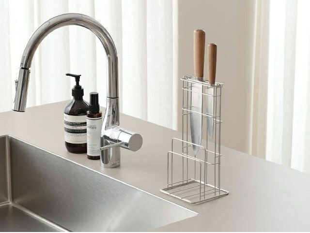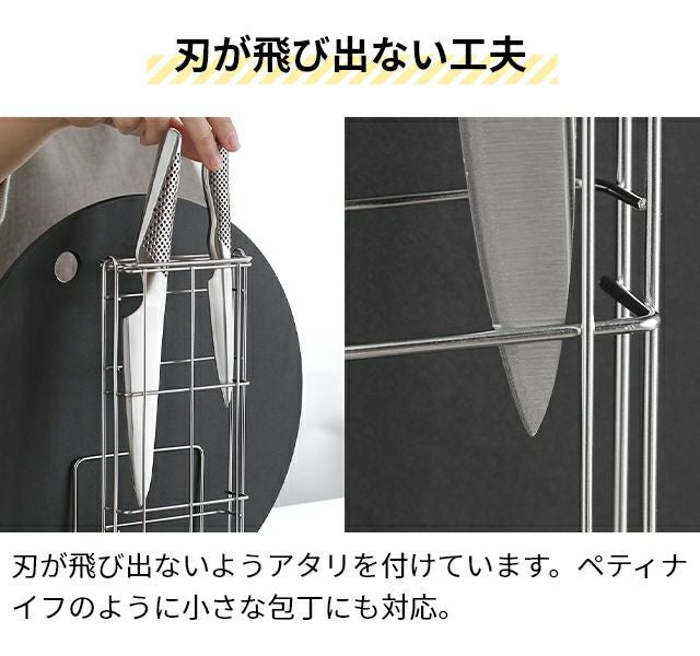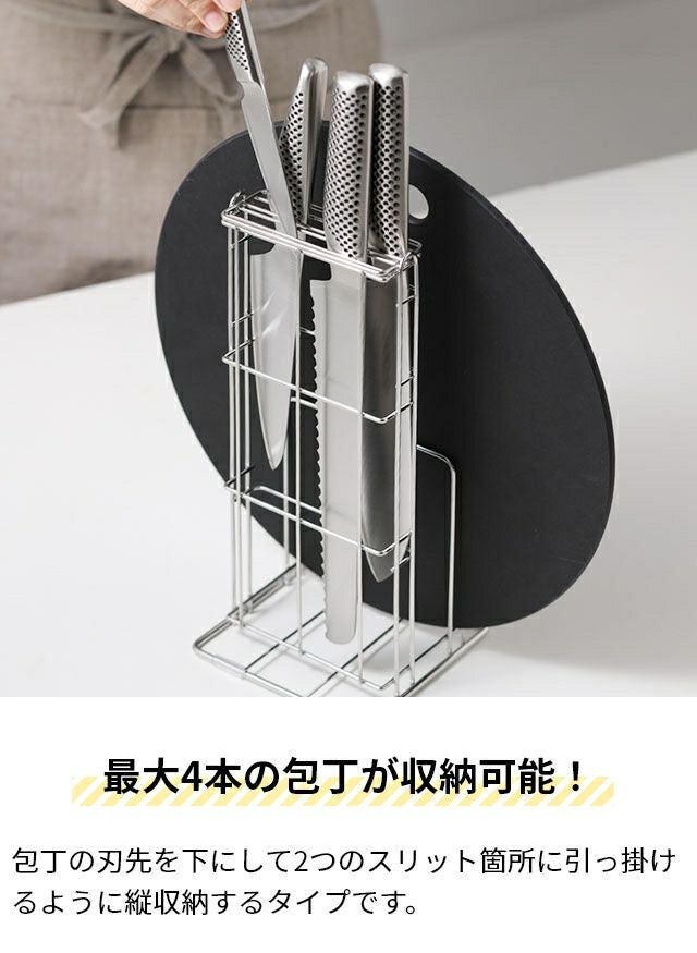 他の画像を見る 包丁やナイフ、まな板やシャープナー等まとめて手に取りやすく収納可能なマルチ包丁スタンド。 当店人気のグローバル三徳3点セットもまな板と一緒にきれいに収納。 AQUAオリジナル カッティングボード&包丁スタンド まな板スタンド 包丁立て 包丁ケース 包丁ラック まな板立て 水切り キッチン コンパクト ステンレス 洗いやすい おしゃれ 洗える 厚み 包丁差し 重いまな板 スリム 収納 省スペース 日本製 人気 当店特別価格 ¥ 2,200 税込 詳細を見る お気に入りに登録する