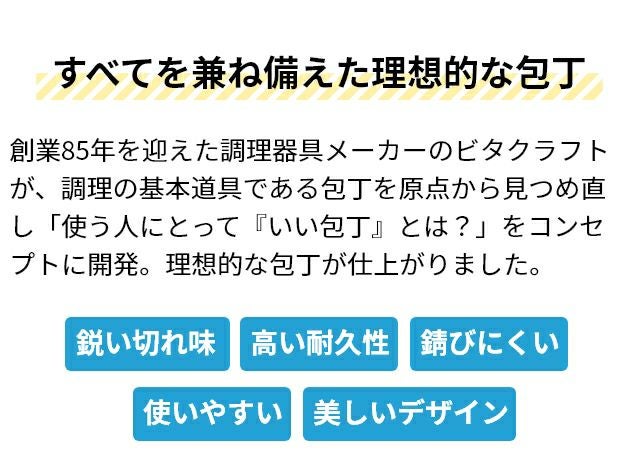 他の画像を見る 創業85年を迎えた調理器具メーカーのビタクラフトが、包丁を原点から見つめ直し、すべてを兼ね備えた理想的な包丁が仕上がりました。 ビタクラフト 【選べる豪華特典】 包丁 オールステンレス ソリッドナイフ シェフナイフ VC-SK01CBK シェフ包丁 キッチンナイフ 牛刀包丁 よく切れる 切れ味 最強 食洗機対応 両刃 左利き 右利き かっこいい おしゃれ おすすめ VitaCraft SOLID KNIFE 当店特別価格 ¥ 6,600 税込 詳細を見る お気に入りに登録する