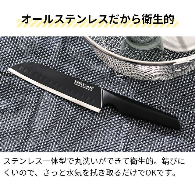 他の画像を見る 創業85年を迎えた調理器具メーカーのビタクラフトが、包丁を原点から見つめ直し、すべてを兼ね備えた理想的な包丁が仕上がりました。 ビタクラフト 【選べる豪華特典】 包丁 オールステンレス ソリッドナイフ 三徳ナイフ VC-SK01SBK 三徳包丁 キッチンナイフ 万能包丁 一体型 よく切れる 切れ味 食洗機対応 両刃 左利き 右利き かっこいい おしゃれ おすすめ VitaCraft SOLID KNIFE 当店特別価格 ¥ 5,500 税込 詳細を見る お気に入りに登録する
